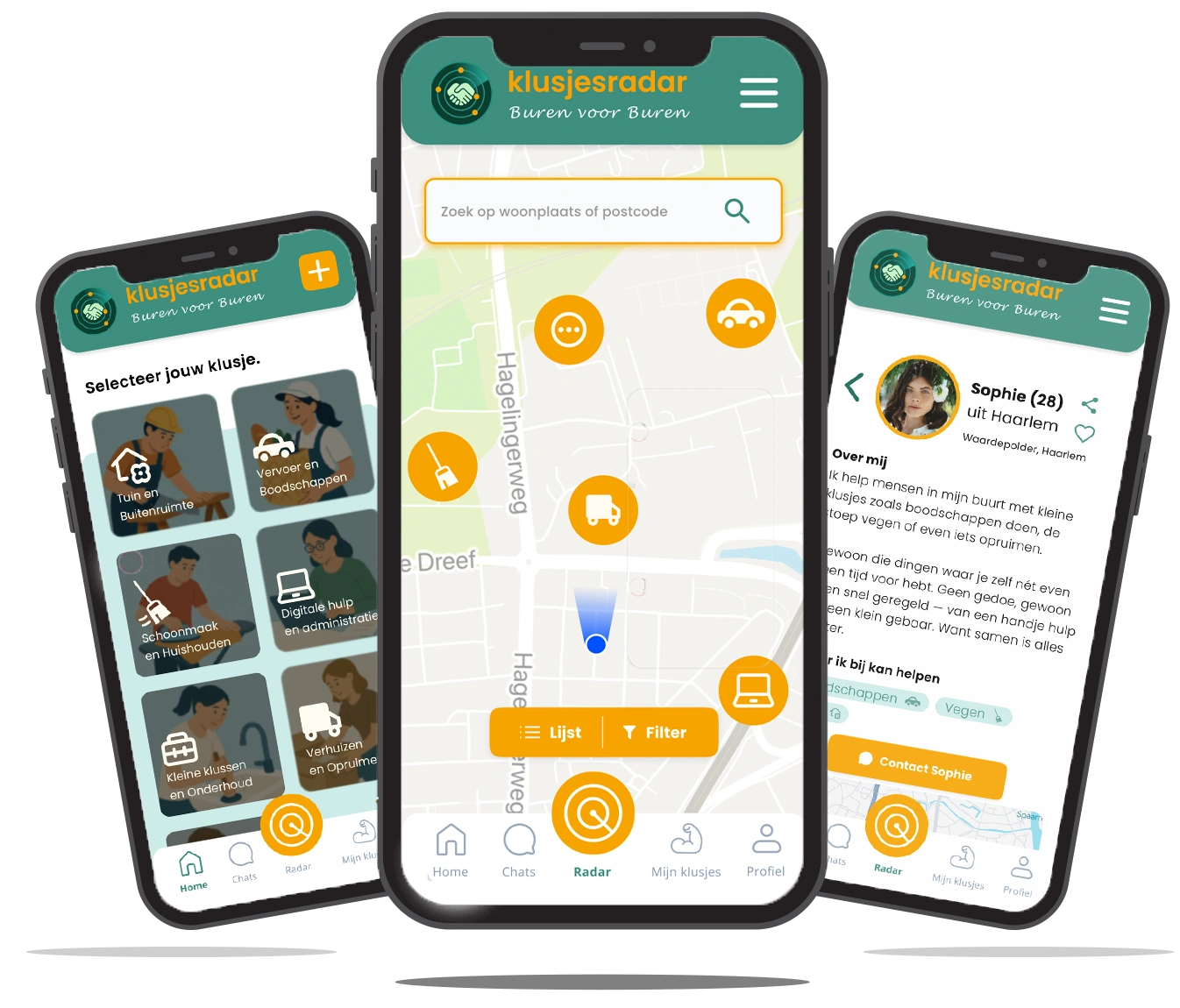 Klusjesradar brengt buurtbewoners en vakmensen samen. Of je nu snel iemand zoekt die je tuin kan aanpakken, je boodschappen kan vervoeren, kan helpen met schilderwerk of juist digitale of administratieve ondersteuning nodig hebt: via de app vind je binnen enkele minuten de juiste persoon. Ook als jij je eigen diensten wilt aanbieden, is Klusjesradar dé plek om opdrachten in jouw buurt te ontdekken.